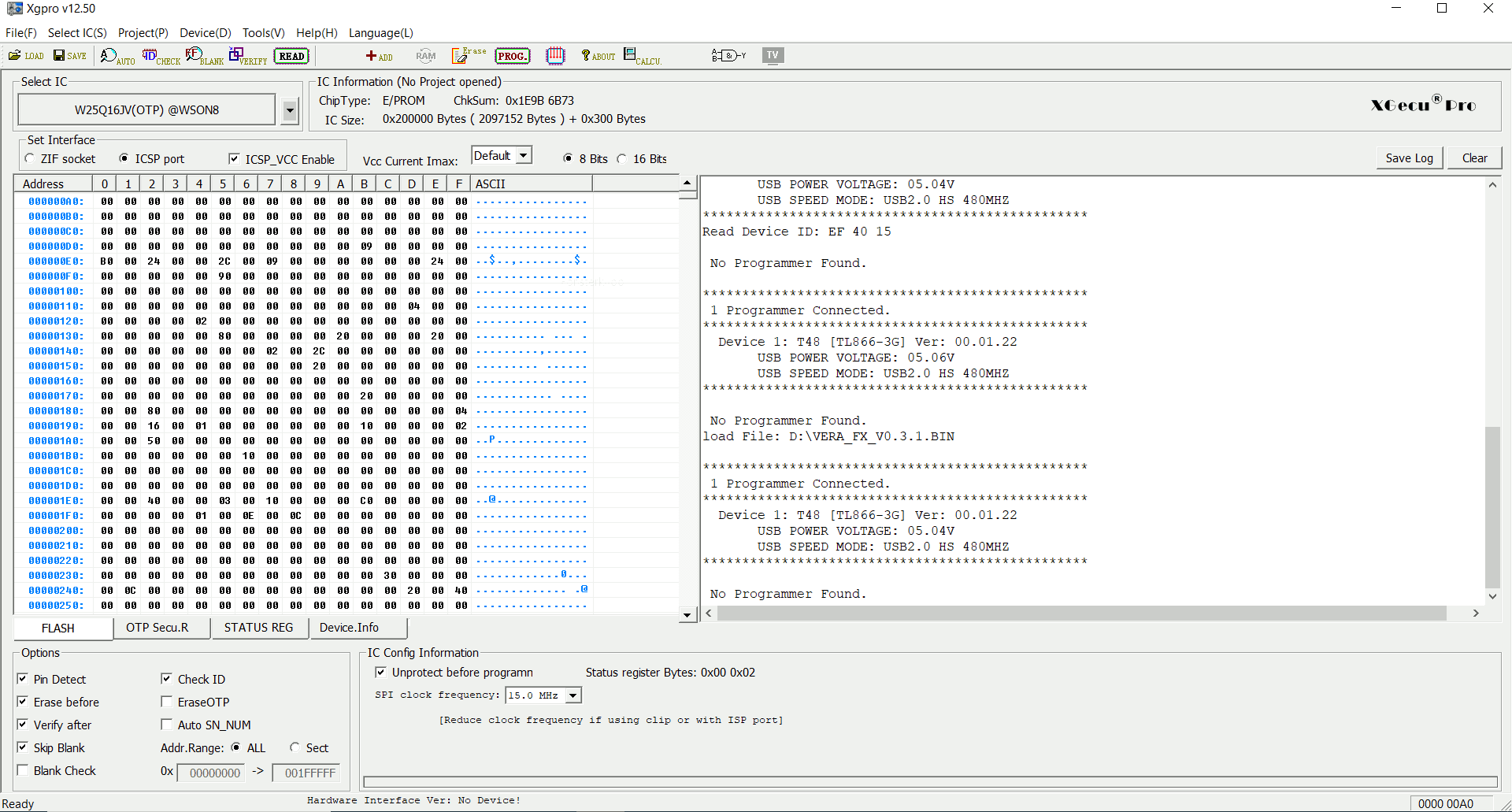 - Setup interface: Choose ICSP port and uncheck ICSP_VCC_Enable